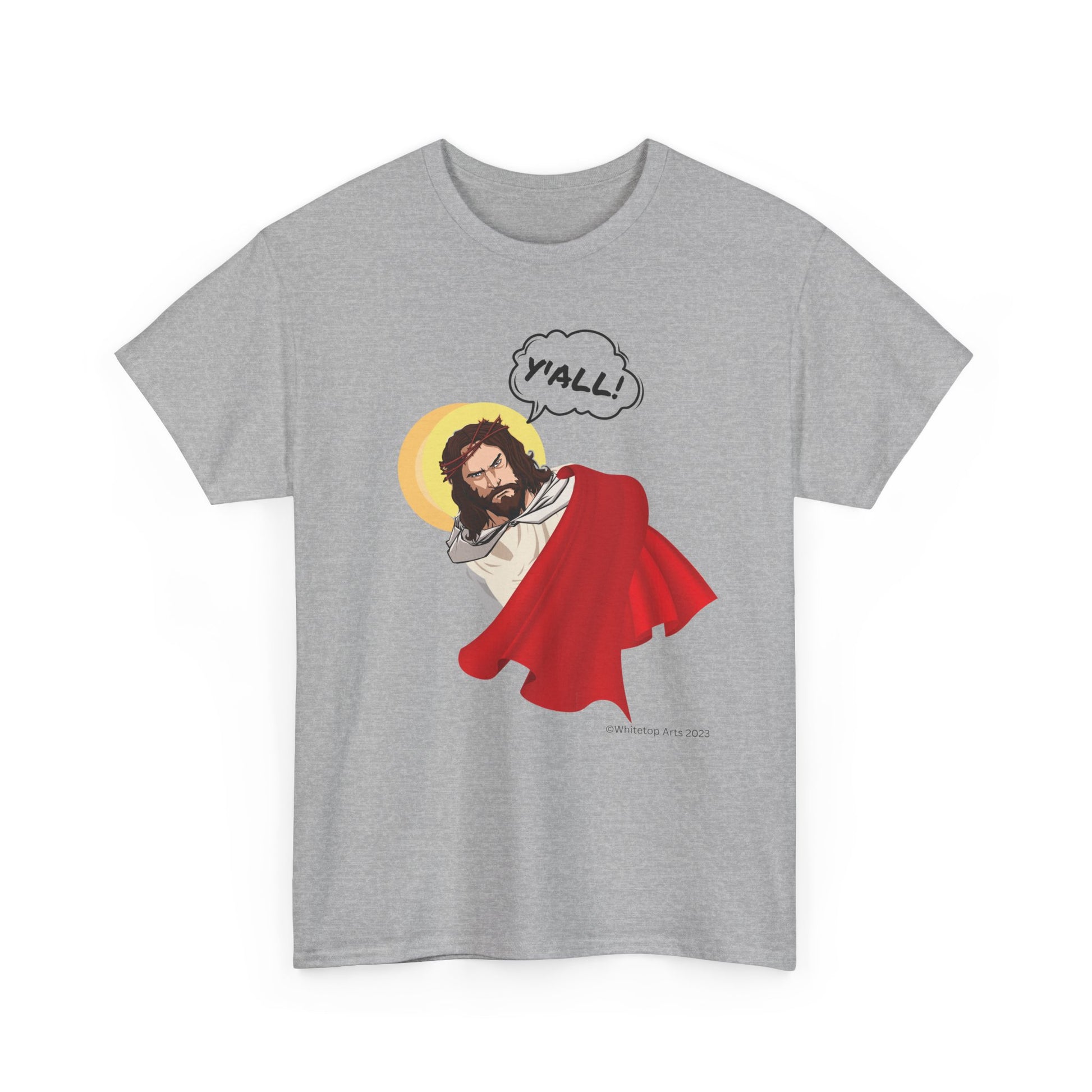 Angry Jesus unisex short sleeve cotton tee shirt. Available in Sport Grey or White. Shirt is a Gildan 5000. Economy shipping available! Original design by Whitetop Arts, a small studio in the Blue Ridge Mountains. Shop small!